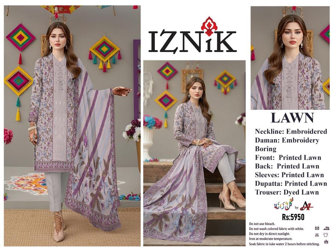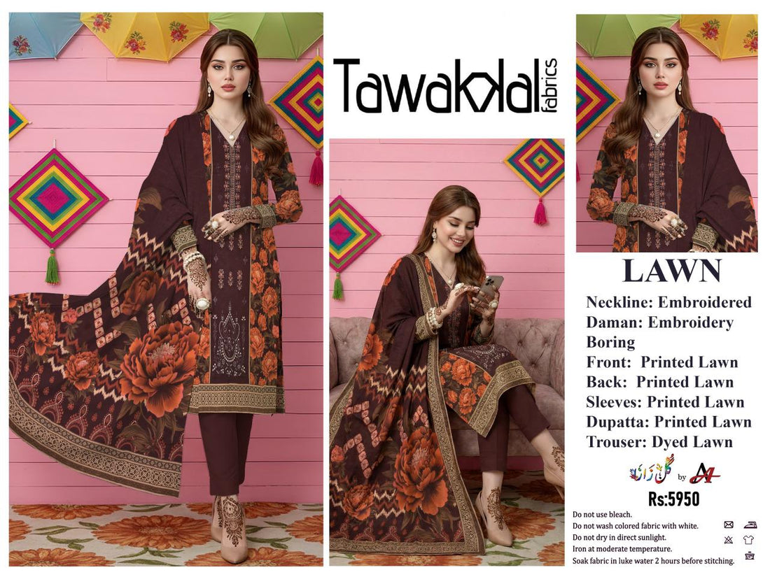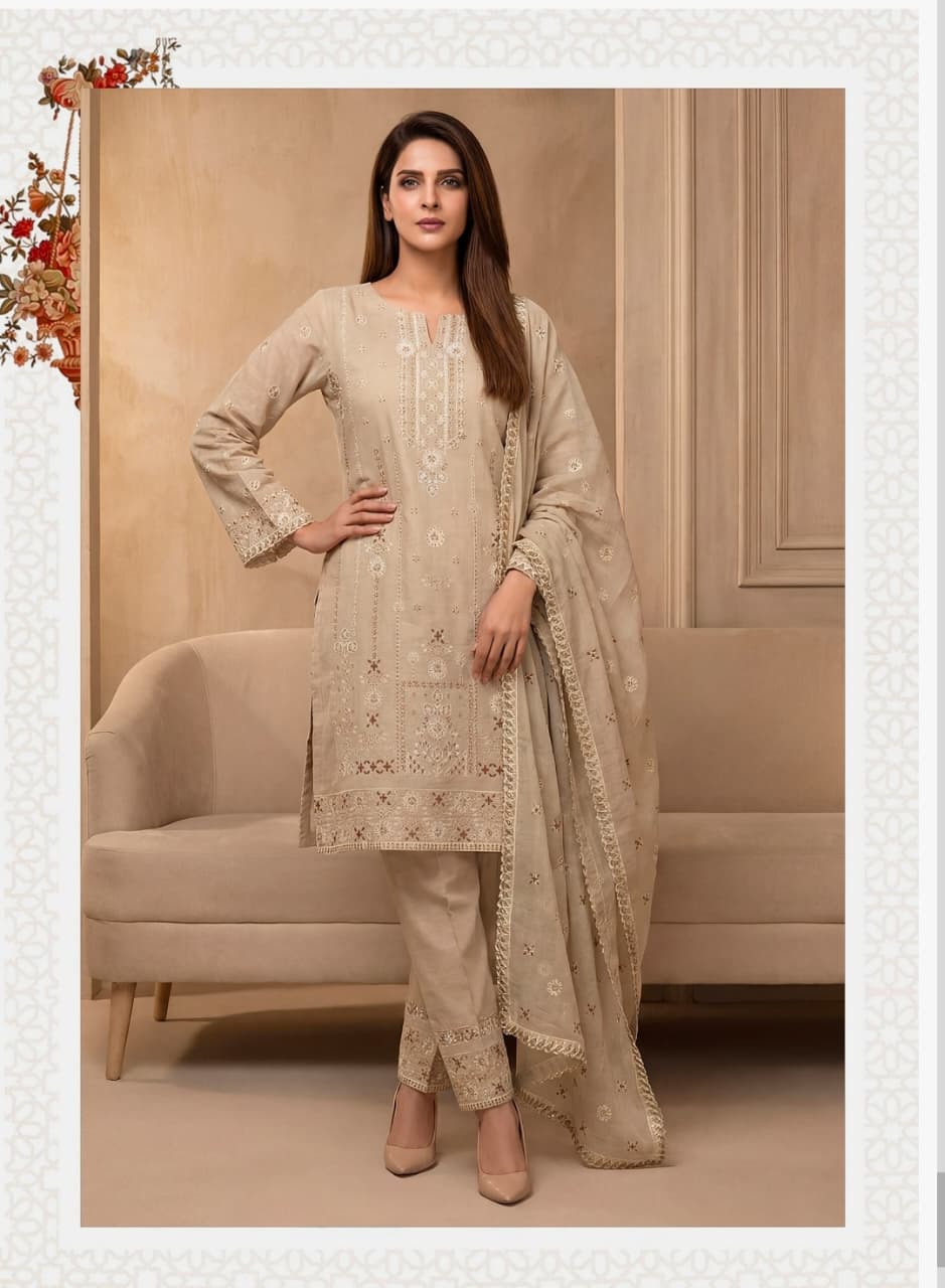 Unstitched 3 Piece Front Embroidery Lawn With Same Digital Printed Dupata Dyed Trouser