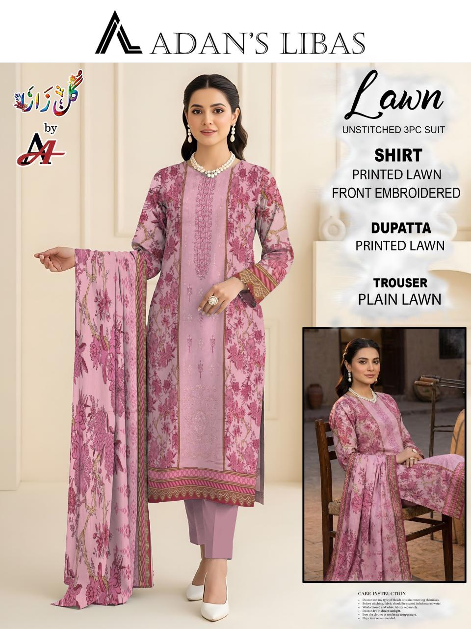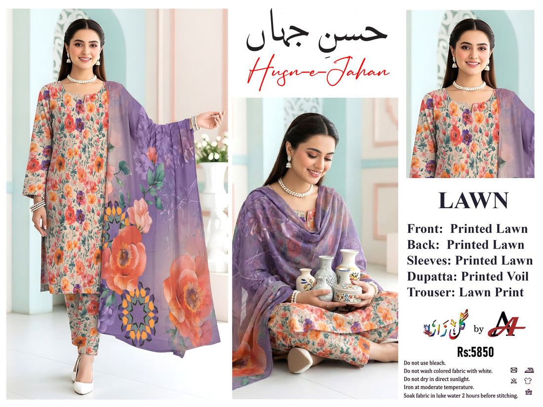 Unstitched 3re Piece Printed Lawn All Over Designs & Printed Voil Dupatta